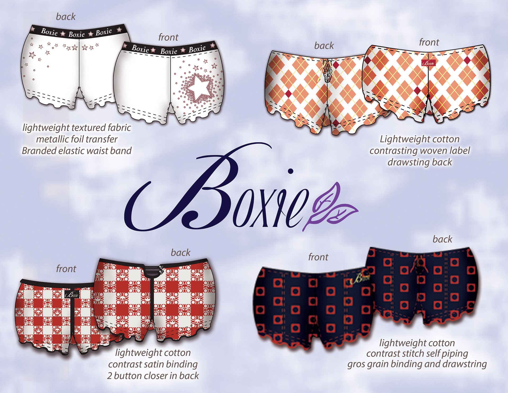 A boxer short that was conceptualized and designed with women in mind. With a unique patent pending pattern and elegant design this incorporated startup ended up partnering with funboxers.com